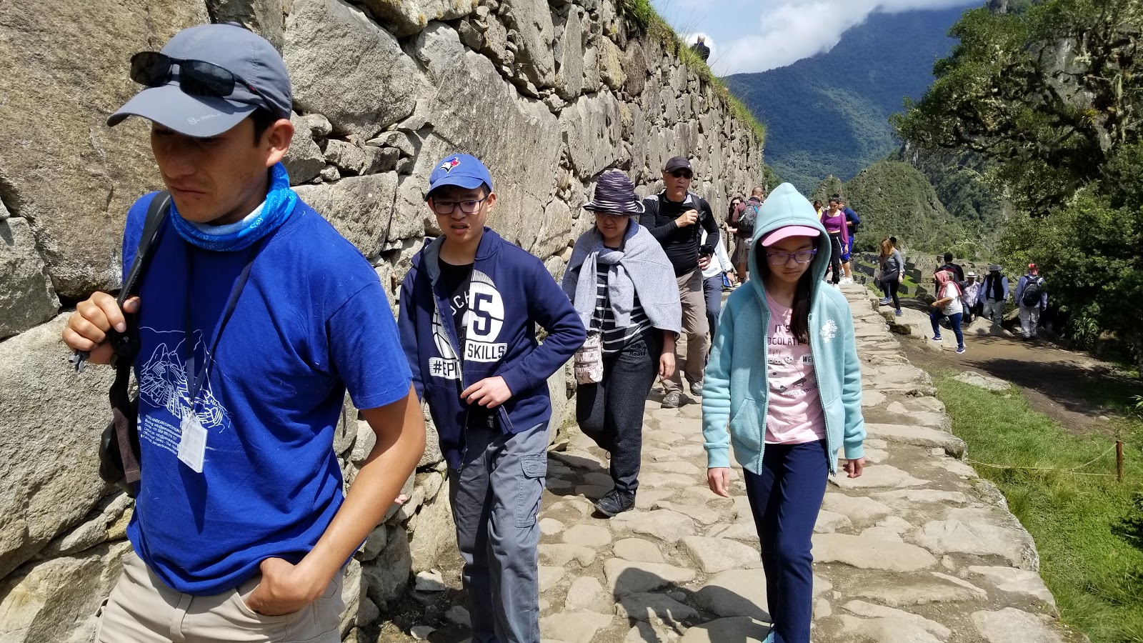 Our guide met us at Aguas Calientes and took us to wait for the 20 min bus ride up to Machu Picchu. The waits were minimal and though there was a crowd (it is supposed to be low season now). I was thankful for this - more wait meant more tired kids.